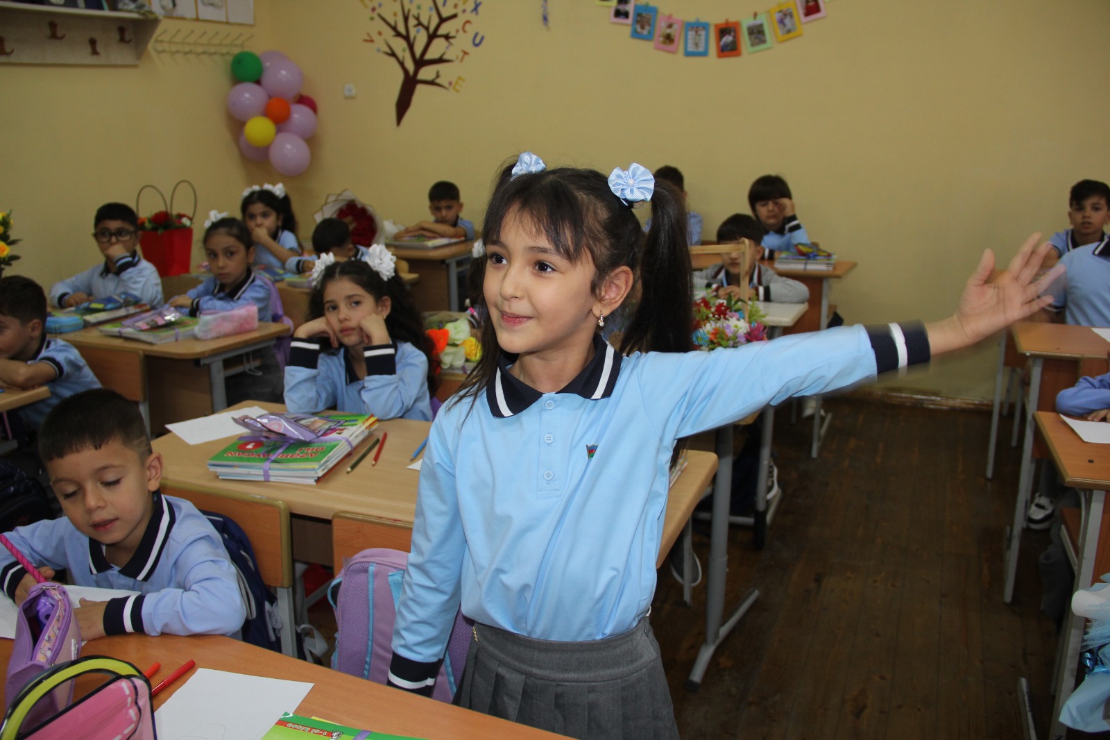 Daha sonra RİH başçısı Rafiq Cəlilov 1-ci sinif şagirdləri ilə onların dərs keçdikləri otaqlarda görüşmüş, fidan balaların söylədikləri Vətənə, məktəbə, müəllimə həsr olunmuş şeirləri dinləmiş, onlarla xatirə şəkli çəkdirmişdir.