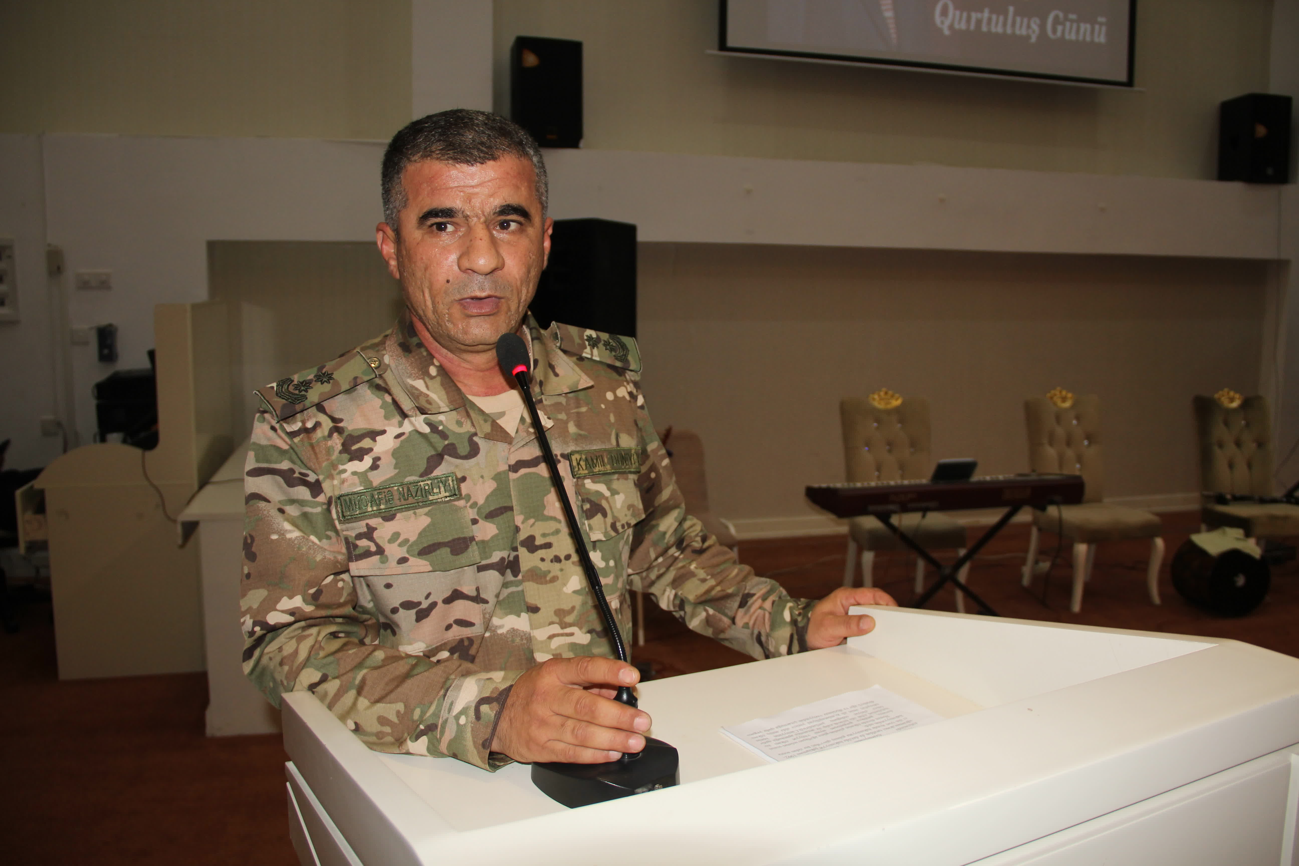 Sonra Azərbaycan Respublikasının dövlət himni səsləndirilmiş və canlarını Azərbaycanın ərazi bütövlüyü uğrunda qurban vermiş şəhidlərimizin xatirəsi bir dəqiqəlik sükutla yad edilmişdir.