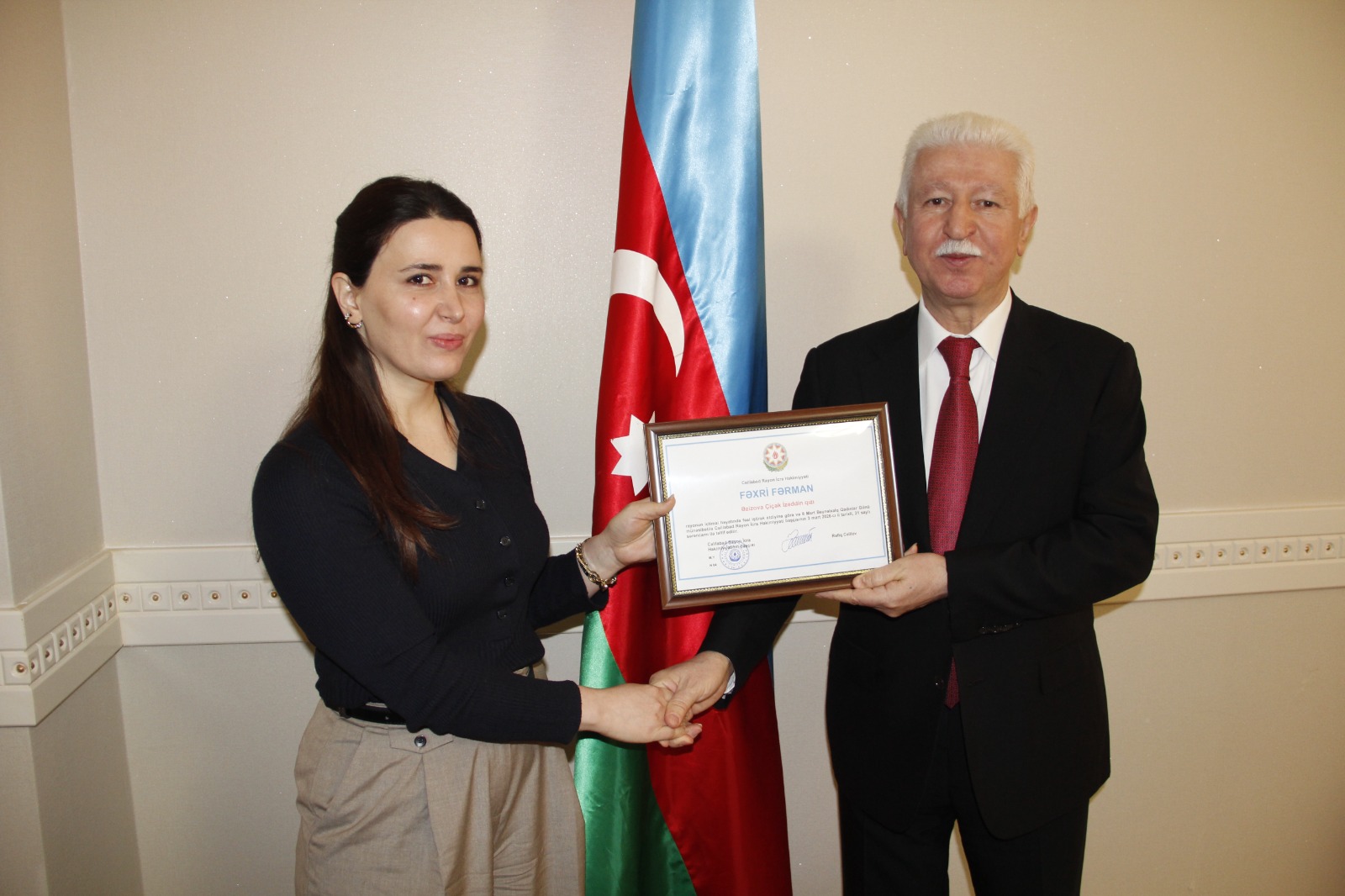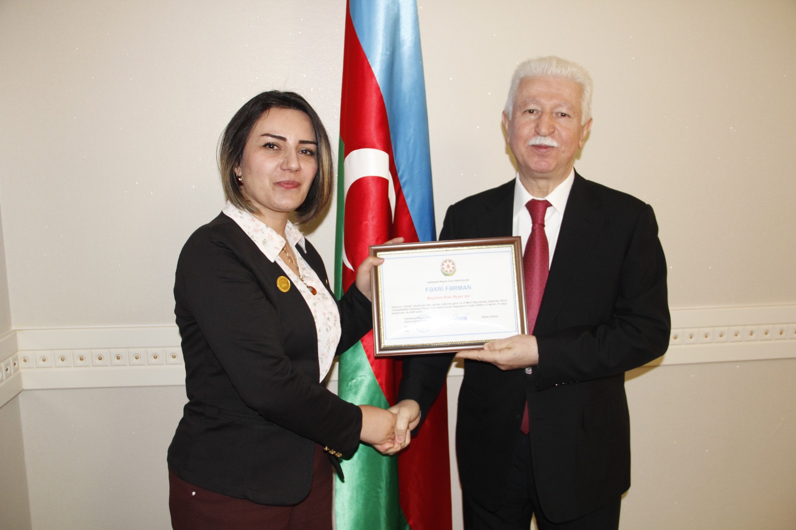 Daha sonra rayonun ictimai həyatında səmərəli fəaliyyətinə görə bir qrup qadın Cəlilabad Rayon İcra Hakimiyyəti tərəfindən Fəxri Fərmanla təltif olunmuş, hədiyyələr və gül təqdim edilmişdir.