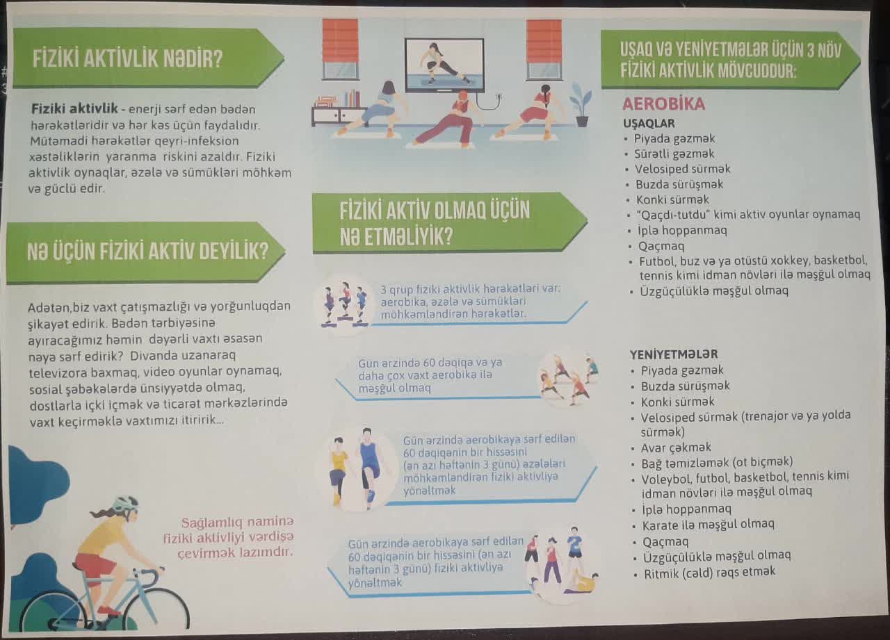 Azərbaycan Respublikası Prezidenti cənab İlham Əliyev 23 dekabr 2015-ci il tarixdə “Azərbaycan Respublikasında qeyri-infeksion xəstəliklərlə mübarizəyə dair 2015-2020-ci illər üçün Strategiya”nın təsdiq edilməsi haqqında 1645 nömrəli Sərəncam imzalamışdır. Həmin Strategiyanın 9.2.1 bəndində sağlamlıq naminə əhali üçün fiziki aktivliyə dair maarifləndirici materillar hazırlanaraq təşviq edilməsi nəzərdə tutulmuşdur.